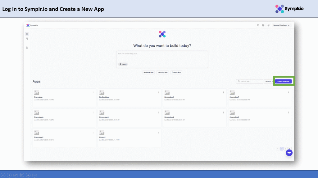 Log in to Symplr.io -Open Symplr.io and sign in.From your dashboard, click “Create New App.”