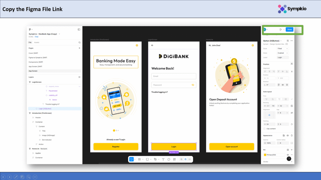 In this guide, you will learn how to import a Figma design into Symplr.io step by step – from preparing your design in Figma to generating a fully interactive app instantly within Symplr.