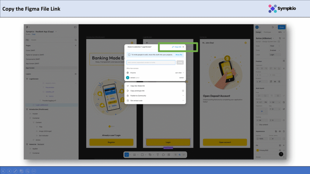 Get Your Figma Design Link – Open your Figma project.Click Share on the top-right.