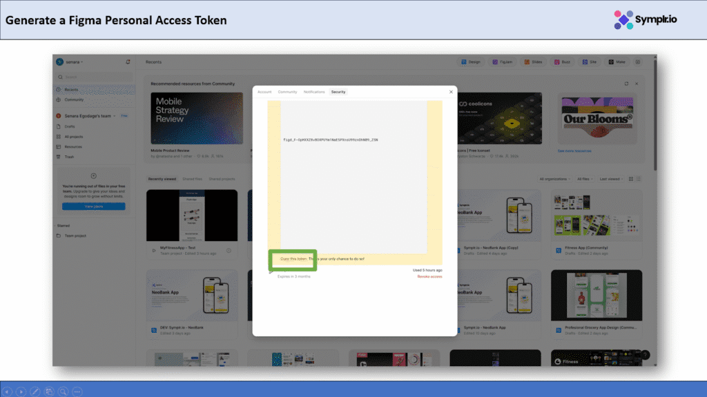 Back in Symplr, paste both your Figma Design URL and Token, then click Next.